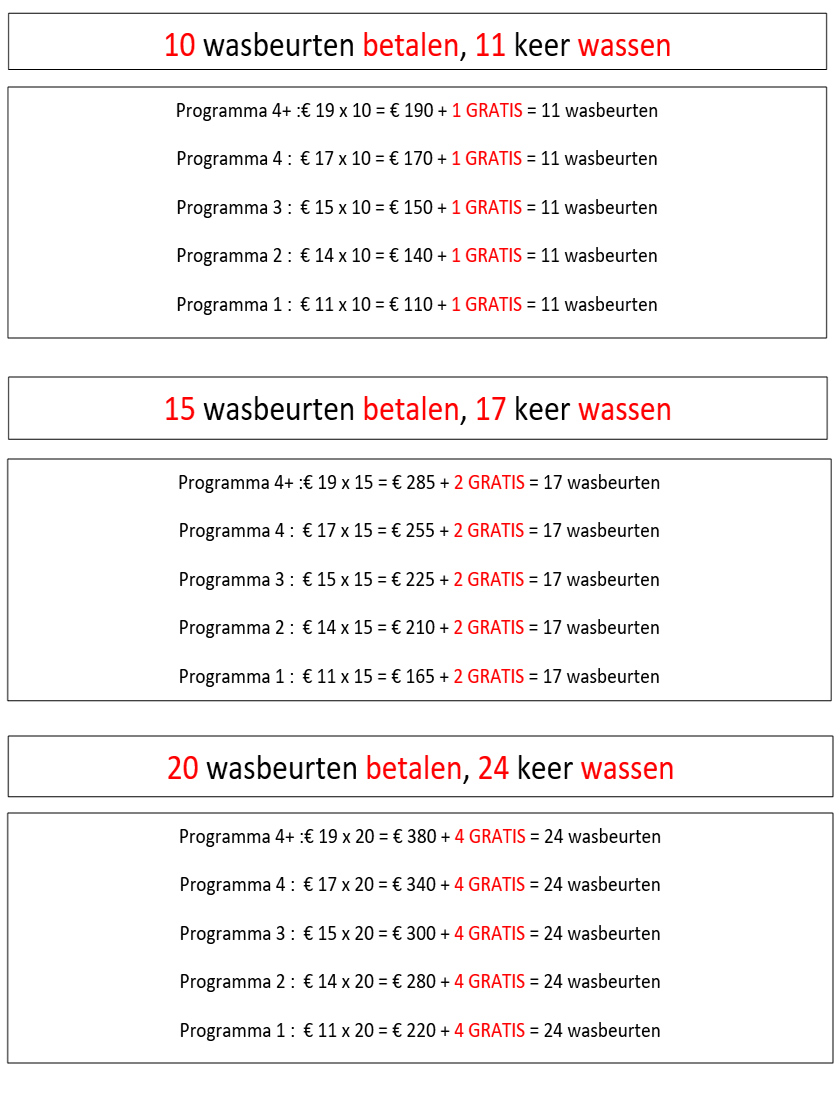 Carwash alle dagen open van 8.30u tot 18.30u - Zondag tot 13u - Feestdagen gesloten